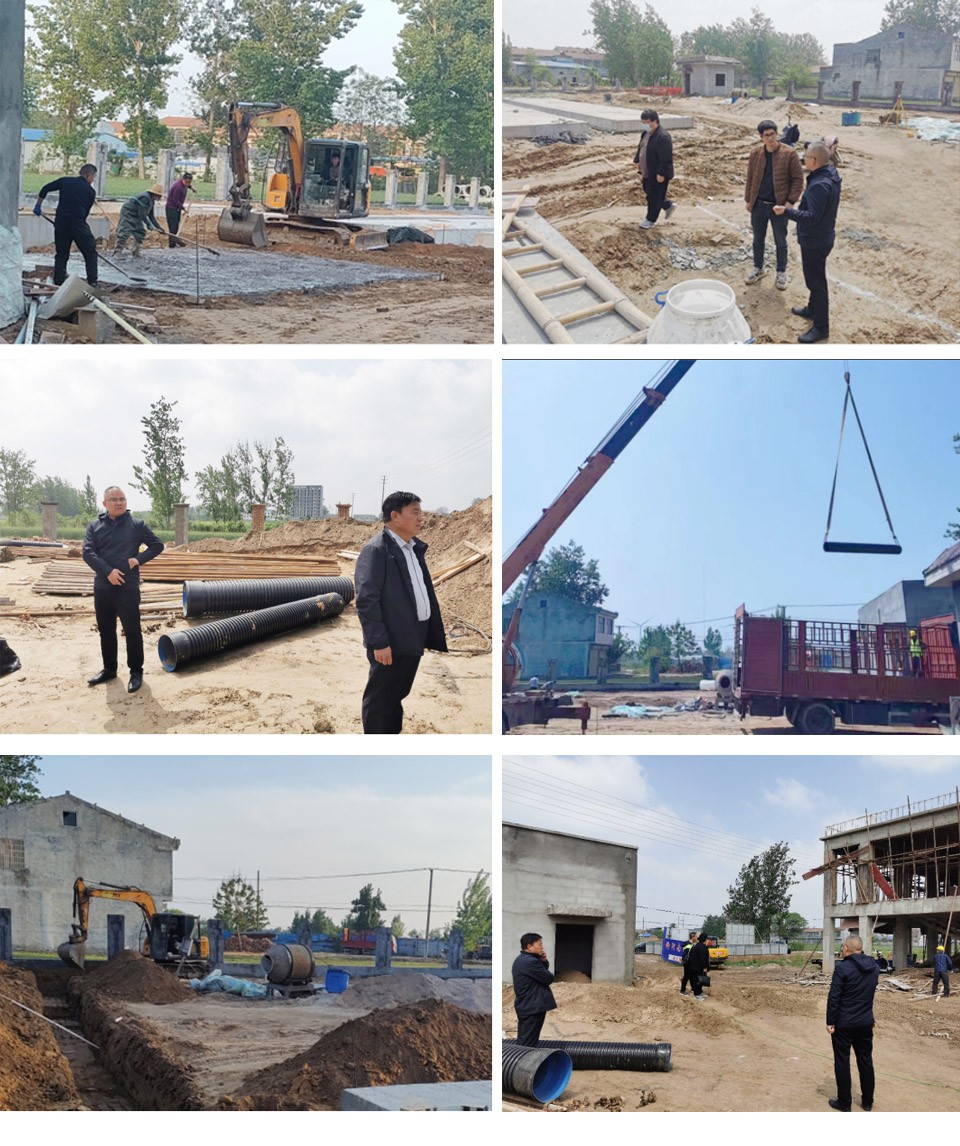 萬川環(huán)保集團董事長謝春磊與工程公司楊總及技術人員龍工、趙工親臨柳河鎮(zhèn)、邏崗鎮(zhèn)污水廠指導、考察施工進度。了解項目施工進程后,董事長謝春磊提出以高水平設計,精細施工、高品質設備為標準,致力將柳河南污水處理廠和邏崗鎮(zhèn)污水處理廠建成為寧陵縣精品工程,樣板工程。要求抓緊工期建設,確保項目保質保量完工,提高寧陵縣縣區(qū)的污水處理能力,進一步改善農村生活環(huán)境,提高村民生活質量,實現(xiàn)水資源的循環(huán)利用。