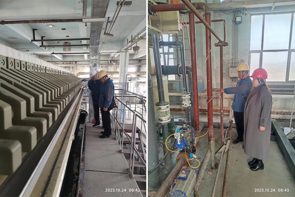 2023年10月24日,我集團副總馬總及技術(shù)總工程師劉總赴吉林中石化視察隔膜板框壓濾機項目進度。